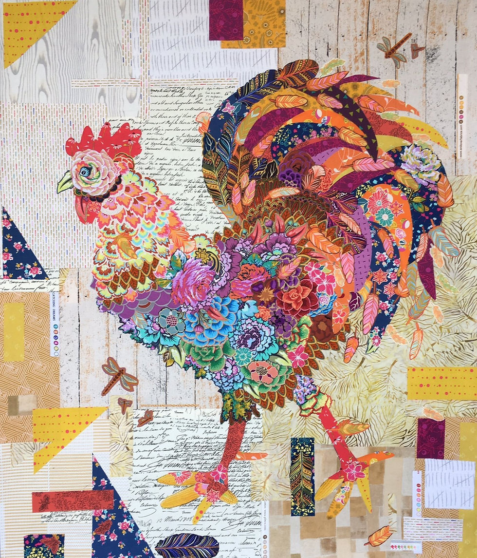 Doodle Doo is the Rooster Collage Quilt Pattern by Laura Heine